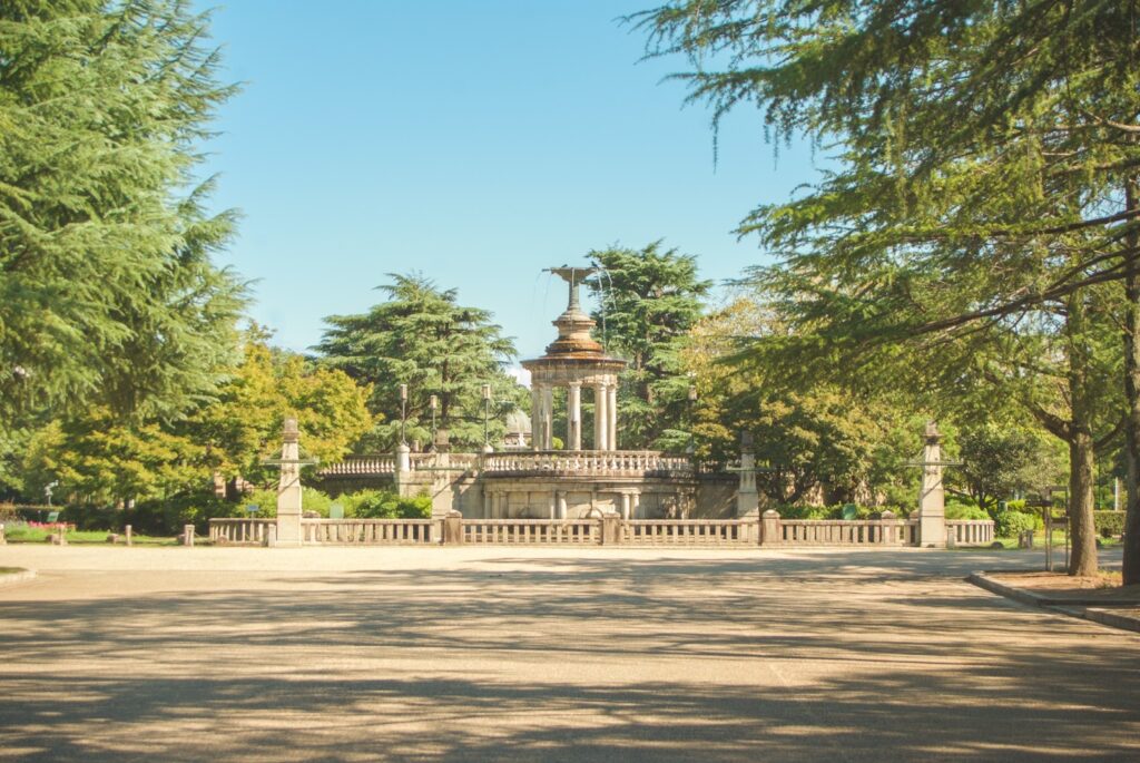 意外と細い大理石柱が華奢(きゃしゃ)で繊細な雰囲気を醸し出していて、とても美しい噴水塔です。