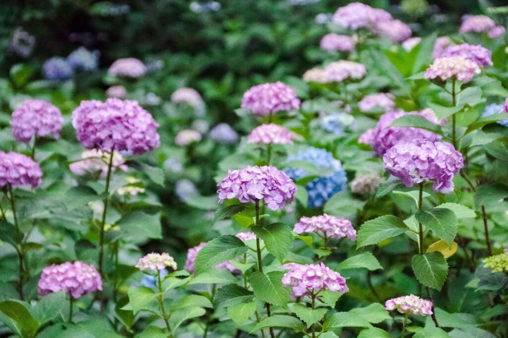 鶴舞公園は桜の名所として有名ですが(すみません、なぜか桜の写真はありません)、野球場の隣に「あじさいの散歩道」というアジサイの名所もあります。