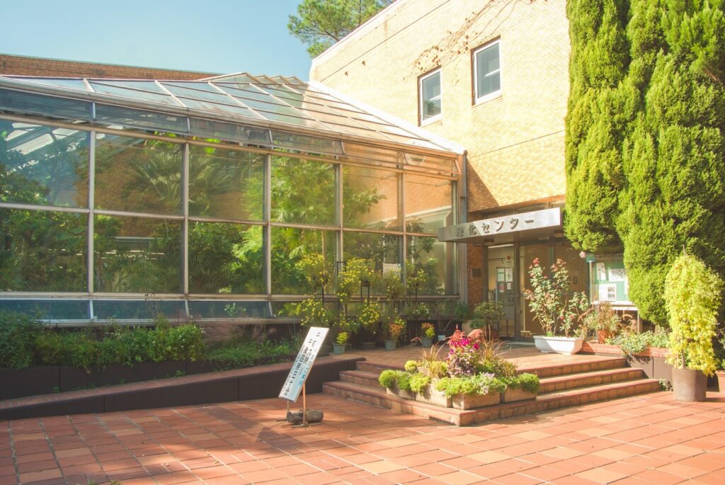 噴水塔の南側には温室を備えた「緑化センター」があります。緑化に関する相談・指導、各種資料の閲覧・展示、講習会・研修会を行っています。