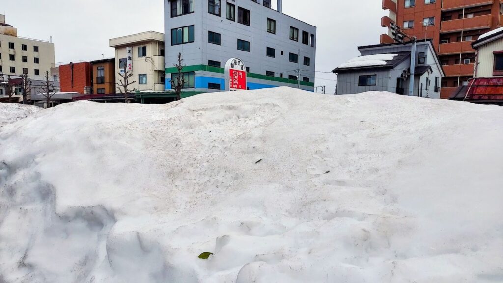 雪が残る2月の長岡市内。除雪された雪があちこちに残る=2026年2月23日、新潟県長岡市神田町、筆者撮影