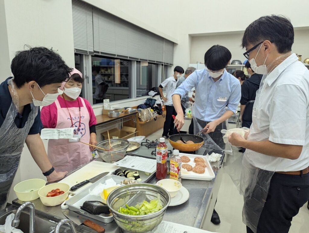 レシピはあっても、切り方や混ぜ方は自由。参加者たちは「こっちの方がやりやすいよ」「それ入れすぎじゃない?」と笑い合いながら作業を進めます。20代の独身男性参加者は「普段から料理はしますが、みんなでやるのは楽しい。みじん切りのコツも教えてもらいました」と話しました。