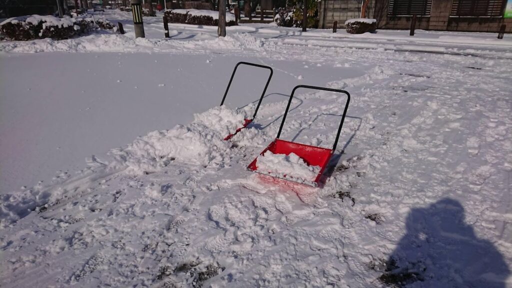 広い駐車場は、スコップや雪ヘラでは間に合わず、ホームセンターで購入した「ママダンプ」という秘密兵器を使う。ネーミングは、ママも使える軽いダンプということだろうか。