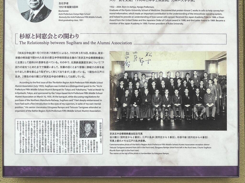 杉原千畝広場の展示より。同窓会で乱歩と千畝は会っています。