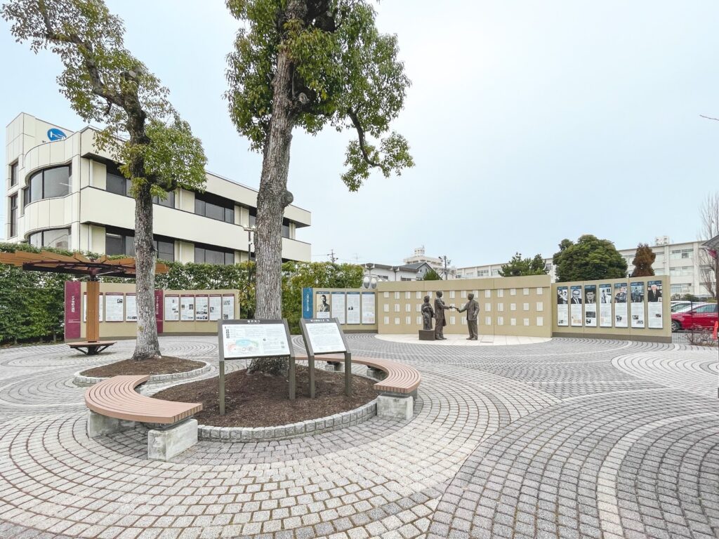 杉原千畝広場全景 奥に見えるのが瑞陵高校